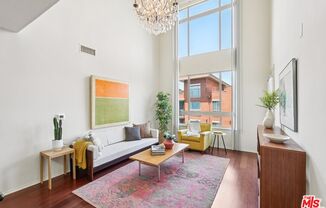 Rarely available and full of character, Unit 440 at Savoy is a 2-bedroom + loft residence that offers dramatic scale and smart versatility in one of DTLA's most vibrant neighborhoods. Freshly painted and with brand new carpet installed, this top-floor home features dramatic 17-foot ceilings and east-facing towering windows. The open-concept living area feels bright, airy, and inspiring, the kitchen comes with granite countertops, clean white cabinetry with ample storage, and a central island that anchors a warm and inviting space flowing seamlessly into the living and dining areas. Upstairs, a cozy loft with a fireplace offers a flexible bonus space ideal for a home office, creative studio, or a private guest retreat. Spacious en-suite bedrooms, in-unit laundry, a private balcony with storage, and 2 assigned parking spaces complete this home. Savoy is a full-service community with standout amenities: a pool, spa, rooftop deck with skyline views, multiple courtyards, fitness center, business center, screening room, guest parking, and 24-hour attended lobby. Located at the intersection of historic Little Tokyo and the creative pulse of the Arts District, Savoy places you in the middle of one of DTLA's most walkable, evolving, and exciting enclaves, just steps from coffee shops, ramen spots, breweries, museums, and Metro access. Some utilities and 2 parking spaces are included with rent.