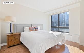Available for an April 20th lease start date. Beautifully renovated and incredibly spacious, south-facing 2 bedroom, 2 bathroom apartment high on the 28th floor now available for rent at 100 United Nations Plaza, one of Midtown East's premier white-glove condominium buildings. Boasting iconic skyline views including the Chrysler and Empire State Buildings, this mint condition apartment is drenched with natural light and measures 1,318 square feet and features 2 private balconies, split-bedroom layout, generously-sized living and dining room, in unit laundry room with a side-by-side washer and dryer, and substantial closet space. Measuring nearly 25 feet long, the south-facing living room and dining alcove will comfortably accommodate multiple seating areas as well as dining for up to 8 people, ideal for day-to-day living or hosting family or friends. The adjacent renovated kitchen is classically styled with warm white cabinetry and granite counter tops and backsplash. There is ample counter and storage space as well as a suite of high-end stainless steel appliances from Bosch and Liebherr. The oversized primary bedroom suite will easily fit up to a California king-sized bed with additional furniture. The en suite marble bathroom boasts a separate shower and soaking bathtub, plus there are three floor-to-ceiling closets running the length of the suite's entry hall offering amazing storage space. At the opposite end of the apartment is the roomy second bedroom with its own renovated en suite bathroom with an extra-large glass-enclosed shower. Additional features include beautiful hardwood floors throughout, crown and baseboard molding, recessed lighting and central heat and A/C. Located on East 48th Street and First Avenue, 100 United Nations Plaza is a white-glove, full service condominium in Manhattan's Turtle Bay neighborhood. Greeting residents with beautifully landscaped gardens and waterfalls, this impeccably run building offers a 24-hour doorman, valet and concierge service, on-site management office, renovated lobby and resident's lounge, common laundry room, fitness center and direct access to an attended parking garage. Conveniently located to transportation and many great shops and restaurants. Showing by appointment only. Tenant in place, advance notice required. Condominium application required. Associated Fees: $20 application fee, per person, non-refundable $500 condo application processing fee $75 consumer report fee, per person $112.50 document retention fee $500 expedite fee, optional $1,318 move-in fee, non-refundable $1,500 refundable move-in deposit 1st month's rent and one month security deposit due at lease signing