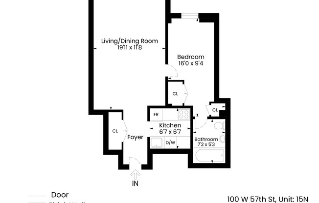 In the Heart of Midtown, welcome to apartment 15N at 100 West 57th Street. This bright, pin drop quiet, 1BD/1BA apartment can come furnished or unfurnished. The apartment features hardwood floors, a living room with enough space for a dining table and a kitchen with stainless steel appliances. The Carnegie House has a 24/7 doorman, concierge, bike room and parking garage. You are conveniently located near the F, N, Q, R, W, E, B and D trains and tons of restaurants and shopping.