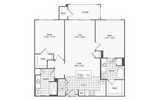 2 beds, 2 baths, 1,107 sqft