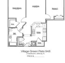 2 beds, 1 bath, 948 sqft