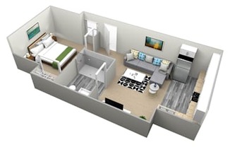 Studio, 1 bath, 392 sqft
