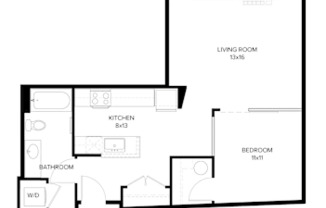 1 bed, 1 bath, 690 sqft
