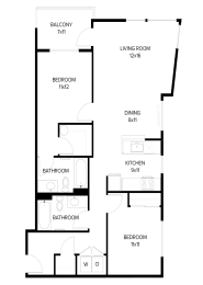 2 beds, 2 baths, 1,038 sqft
