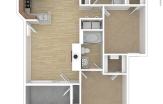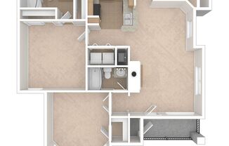 2 beds, 2 baths, 1,073 sqft