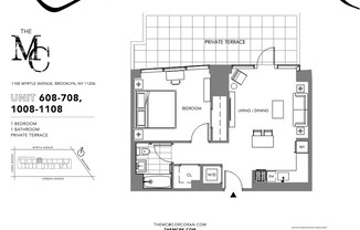 Introducing The MC, a new forward-thinking rental development where your ticket to clarity and good fortune is offered through a combination of modern design and spiritual attributes that lie within the walls of this unique offering. Each of The MC's 233 studio, one- and two-bedroom residences boast designer living that encourages meaningful self-expression and a new outlook on true positive thinking. With highlights that include oversized floor-to-ceiling windows, soaring ceilings, trendsetting kitchens, and spa-like bathrooms with layers of luxe finishes, this elevated lifestyle allows residents to enjoy a canvas to reflect their own personal aesthetic and surroundings. Open layouts offer flexibility to accommodate dining areas or home offices and select residences offer private outdoor terraces or roof decks. The MC provides residents with the opportunity to connect mind with soul within their own homes each day. The host of practical amenities and services inside make everything about life at The MC pure Brooklyn. Lifestyle amenities and building services include: Building Amenities Indoor: Attended Lobby Co-working Library Lounge Media Lounge Billiard Lounge State-of-the-art Fitness Center Featuring: o Cardiovascular Training Machines o Multi-use Weight Machinery o Spin Bikes o Outdoor: Free Weight Training Equipment 3,000 Square Foot 2nd Floor Co-working Amenity Terrace 11,000 Square Foot Outdoor Roof Deck with Lounging and Sunbathing zones and Dining Areas A Private Rooftop Dog Run Daily Services & Amenities Attended Lobby Concierge 24 Hour Self-Serve Package Room Live-in Building Super Dedicated Building Manager Pet Washing Station Attended Indoor Parking Garage with Electric Vehicle Charging Available Bicycle Storage Additional fees may apply For your daily commute, The MC is located just around the corner from the Myrtle Ave J, Z & M subway station or the B54 and B16 bus stops for a quick ride throughout Brooklyn and Queens. Pictures are of model unit Required Fees To Rent This Unit: $20 Application Fee per applicant 1st Month's Rent 1 Month's Security Deposit 20-699.22 Total fee disclosure. a. Every listing related to the rental of residential real property shall disclose in such listing in a clear and conspicuous manner any fee to be paid by the prospective tenant for the rental of such property. b. Prior to the execution of an agreement for the rental of residential real property, the landlord or landlord's agent shall provide to the tenant an itemized written disclosure of any fees that the tenant must pay to the landlord or to any other person at the direction of the landlord in connection with such rental. Such itemized written disclosure shall include a short description of each fee, and the tenant shall sign any such itemized written disclosure prior to signing an agreement for the rental of such residential real property. The landlord or landlord's agent shall retain the signed written disclosure required by this subdivision for 3 years and shall provide a copy of such signed written disclosure to the tenant.