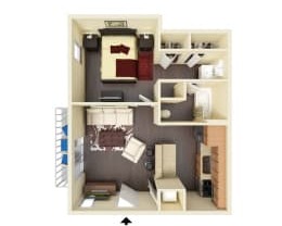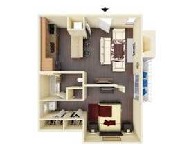 Studio, 1 bath, 575 sqft