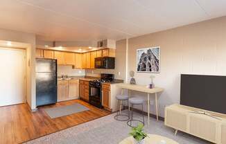 River Tower Apartments offers contemporary living in an enviable location. Our building and homes are recently renovated with views of the Big Sioux River and downtown Sioux Falls. We offer a range of studio through two-bedroom apartments - our studio apartments feature an open floor plan with a living area, kitchen, bathroom and storage and our one and two-bedroom apartments offer a kitchen, living room, bedroom(s) with a built-in closet and a bathroom. Residents also enjoy a range of amenities including a community room with a computer center, elevators, fitness center and beautiful leafy courtyard with a view. We are located in the heart of downtown Sioux Falls with easy access to the Greenway bike trail, Falls Park, restaurants, bars and entertainment a short distance from your home. On top of our amenities and location, you'll love our free off-street parking and utilities included in rent. Schedule a tour to explore River Tower today and come home to downtown living!