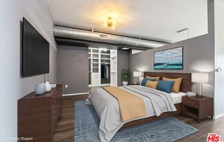 This spacious and highly functional residence offers an open layout with soaring ceilings, engineered maple hardwood floors, and expansive east-facing windows that bring in abundant natural light. Glass doors open to a Juliet balcony, allowing fresh air and pleasant park-facing views. The oversized living and dining area flows seamlessly from the kitchen, which features a vented range and ample space for both everyday living and entertaining. A desirable powder room provides added convenience for guests. The primary suite includes updated bathrooms and a custom-designed walk-in closet with built-in shelving and integrated lighting. A large utility room adds exceptional functionality with designer shoe racks, a full-size vented washer and dryer, and a newer HVAC system (approximately 3 years old). Included with the lease is one assigned parking space equipped with a private EV charger, along with a large private storage unit located directly next to the parking space a rare and valuable feature for downtown living. Elleven is a modern LEED-Certified high-rise offering a 24-hour front desk and security, on-site management, and a beautifully designed 4th-floor amenity terrace with Viking BBQ stations, pool, spa, fire pit, and lounge areas. Spacious layout, EV parking, and private storage make this one-bedroom residence a standout leasing opportunity in DTLA. Easy to show.