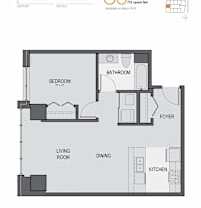 1 bed, 1 bath, 843 sqft