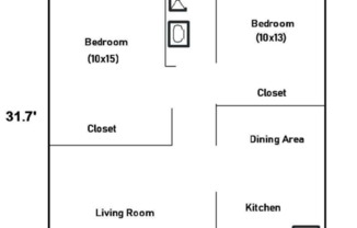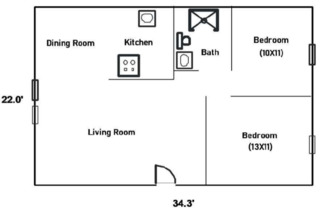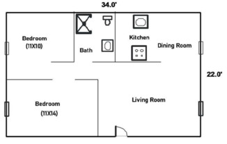 2 beds, 1 bath, 856 sqft