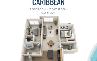 2 beds, 2 baths, 1,206 sqft