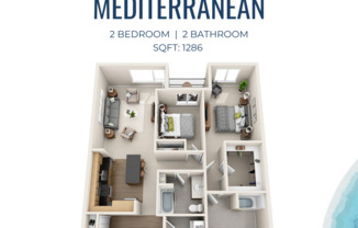 2 beds, 2 baths, 1,286 sqft