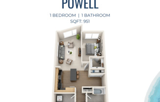 1 bed, 1 bath, 951 sqft