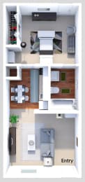 1 bed, 1 bath, 480 sqft