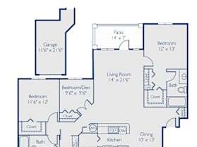 2 beds, 2 baths, 1,303 sqft