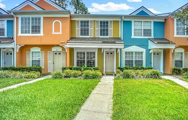 Well-maintained 2BR/2BA townhome-style condo in the desirable gated Seasons at Kensington community. Ideally located just minutes from the beach, Downtown Jacksonville, UNF, and St. Johns Town Center. This spacious unit features high ceilings, two generously sized bedrooms each with a private full bath, tile flooring on the first floor, and brand-new luxury vinyl plank upstairs—no carpet. Kitchen opens to a private patio with attached storage closet. All appliances included, including washer and dryer. Community amenities include a pool, with water, garbage, basic cable, exterior maintenance, and landscaping included
