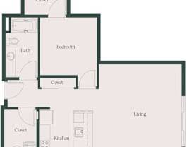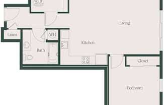 1 bed, 1 bath, 740 sqft
