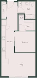 Studio, 1 bath, 557 sqft