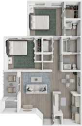 2 beds, 2 baths, 1,044 sqft