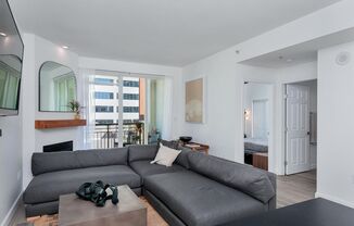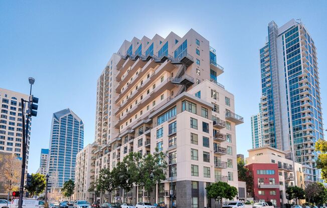 Fully furnished 1 bedroom plus den with murphy bed. 1 bath condo located in an amazing Little Italy high rise building. Decorated meticulously throughout and featured with everything pictured. Recently remodeled throughout. Bright kitchen with tiled backsplash and quartz countertops. Eat at kitchen bar area with barstools. Separate dining room area that seats 4. Open living room with fireplace and access to city view balcony. Spacious master with queen size bed. Remodeled bathroom with new fixtures and tile. W/D in unit. 1 parking space. Amazing community includes onsite concierge, pool, hot tub, exercise room, community room, business center & outdoor BBQ space. Minimum 30-day rental. Renter’s insurance required. Pets considered on case-by-case basis and require additional deposit
