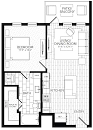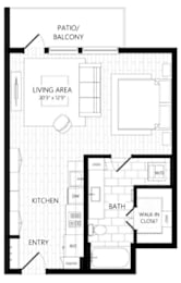 Studio, 1 bath, 588 sqft
