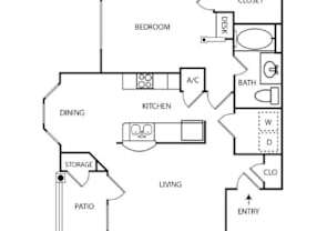 1 bed, 1 bath, 690 sqft