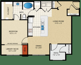 1 bed, 1 bath, 672 sqft
