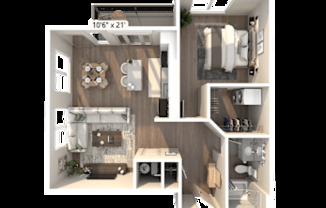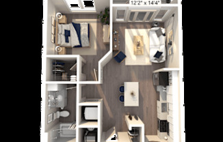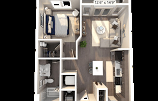 Studio, 1 bath, 677 sqft