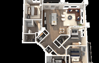 2 beds, 2 baths, 1,091 sqft