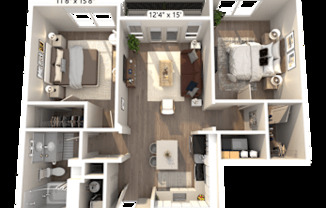 2 beds, 2 baths, 1,154 sqft