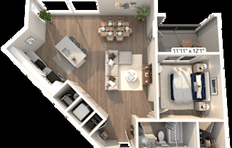 1 bed, 1 bath, 729 sqft