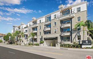 This spacious luxury penthouse unit is available with a 12-month lease terms. The HERMADA features keyless entry and offers two bedrooms and two bathrooms with private dual suite configuration and luxury bathrooms that have an oversized walk-in shower or tub. The open concept designer kitchen and windowed dining area leads into the generously apportioned vaulted ceiling living room with built-in media counter. An interior balcony complements the floor plan allowing for serene courtyard garden panoramic views. The kitchen is fully equipped with high-end appliances, including a built-in Miele espresso machine and Perlick wine fridge. An exterior balcony complements the floor plan and provides scenic views of The Getty. Villa Bel Air offers residents an array of modern amenities to level-up your lifestyle including a gym with top-tier equipment, central courtyard with fireplace, and a work lounge with state-of-the-art ROOM pods for conferencing and private meetings. Unwind by the koi pond in the lushly landscaped garden, bask in the sunshine at the outdoor penthouse lounge, or hit the grill area for an al fresco culinary adventure.
