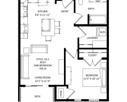 1 bed, 1 bath, 705 sqft