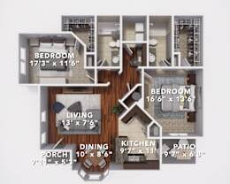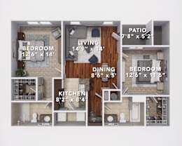 2 beds, 2 baths, 1,328 sqft