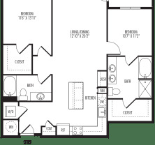 2 beds, 2 baths, 1,065 sqft