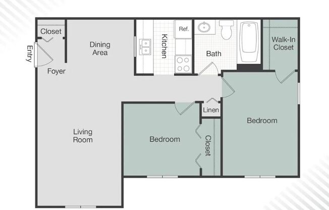2 beds, 1 bath, 800sqft