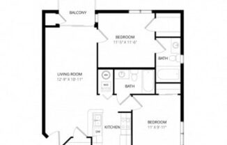2 beds, 2 baths, 905 sqft