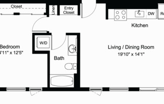 1 bed, 1 bath, 741 sqft