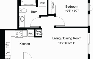 1 bed, 1 bath, 618 sqft