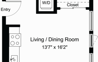 Studio, 1 bath, 502 sqft
