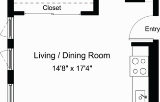 Studio, 1 bath, 463 sqft