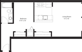 Studio, 1 bath, 630 sqft