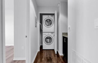 TOP FLOOR Updated 1bed 1bath with lots of light in a newer secure building. Updated kitchen with stainless steel appliances, spacious living room with large outdoor patio with city views. Bedroom is well sized with a HUGE bathroom. Other features include in-unit full size washer & dryer, central AC, one assigned parking spot in gated garage, a fitness room, a secure pet area on the property to walk your dog at night and an outdoor lounge with seating and dining tables. Pet friendly.