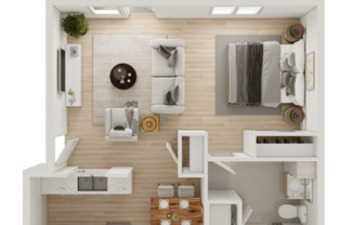 Studio, 1 bath, 608 sqft