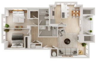 2 beds, 2 baths, 1,005 sqft