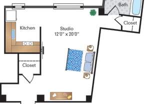 Studio, 1 bath, 476 sqft