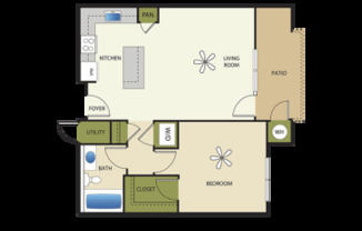 1 bed, 1 bath, 694 sqft