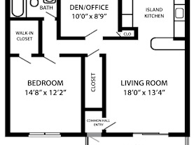 1 bed, 1 bath, 869 sqft