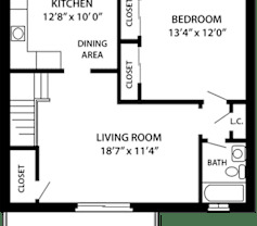1 bed, 1 bath, 742 sqft